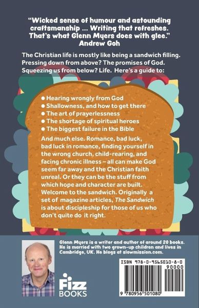 Wicked sense of humour and astounding craftsmanship. ... Writing that refreshes. That's what Glenn Myers does with glee. Andrew Goh. The Christian life is mostly like being a sandwich filling. Pressing down from above? The promises of God. Squeezing us from below? Life. Here's a guide: · Hearing wrongly from God · Shallowness, and how to get there · The art of prayerlessness · Learning good sense from the minds of small children · The shortage of spiritual heroes · The biggest failure in the Bible And much else, Romance, bad luck, bad luck in romance, finding yourself in the wrong church, child-rearing, and facing chronic illness - all can make God seem far away and the Christian faith unreal. Or they can be the stuff from which hope and character are built. Welcome to the sandwich. Originally a set of magazine articles, The Sandwich is a refreshing set of discipleship articles for those of us who don't quite do it right.
