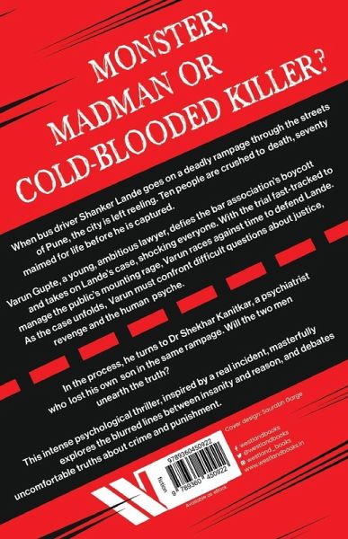About the Book 'TERRIFIC PLOT, A HORRIFIC CRIME! A DISTURBING STORY, NARRATED SUPERBLY.' - SUJOY GHOSH, DIRECTOR OF KAHAANI AND JANE-E-JAAN MONSTER, MAD-MAN OR COLD-BLOODED KILLER? When bus driver Shanker Lande goes on a deadly rampage through the streets of Pune, the city is left reeling. Ten people are crushed to death, seventy maimed for life before he is captured. Varun Gupte, a young, ambitious lawyer, defies the bar association's boycott and takes on Lande's case, shocking everyone. With the trial fast-tracked to manage the public's mounting rage, Varun races against time to defend Lande. As the case unfolds, Varun must confront difficult questions about justice, revenge and the human psyche. In the process, he turns to Dr Shekhar Kanitkar, a psychiatrist who lost his own son in the same rampage. Will the two men unearth the truth? This intense psychological thriller, inspired by a real incident, masterfully explores the blurred lines between insanity and reason, and debates uncomfortable truths about crime and punishment. About the Author Salil Desai is the author of the much-acclaimed Inspector Saralkar Mystery Series. The books are currently being adapted into a web series by Jio Studios. An alumnus of Film & Television Institute of India (FTII), Salil also conducts intensive workshops in creative fiction writing, story and scenario design, screenplay writing and film-making at leading liberal arts institutions and media & communication colleges across India. He is a seasoned newspaper columnist, with over 400 articles, op-ed pieces, features and travelogues in leading dailies. Salil's books have been reviewed in The Hindu, New Indian Express, The Pioneer, Bangalore Mirror, DNA, First City and The Tribune among others. His work has been praised by veteran authors Dr Shashi Tharoor, Shobhaa De and film-makers Sriram Raghavan and Sujoy Ghosh. Salil was one of the four international authors worldwide, selected for the HALD International Writers' Residency in Denmark, hosted by the Danish Centre for Writers & Translators in June 2016. He was also invited to Gullkistan Centre for Creativity, Iceland, and spent the month of May 2023 there as a Resident.