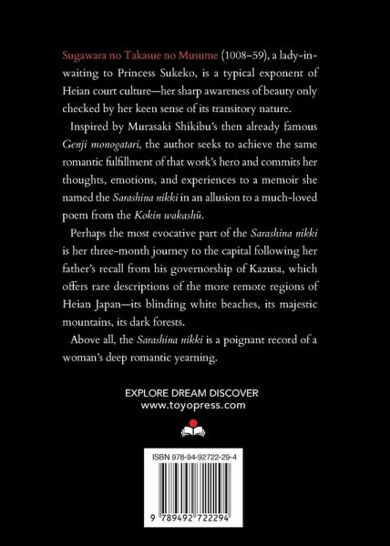 Sugawara no Takasue no Musume (1008-59), a lady-in-waiting to Princess Sukeko, is a typical exponent of Heian court culture-her sharp awareness of beauty only checked by her keen sense of its transitory nature. Inspired by Murasaki Shikibu's then already famous Genji monogatari, the author seeks to achieve the same romantic fulfillment of that work's hero and commits her thoughts, emotions, and experiences to a memoir she named the Sarashina nikki in an allusion to a much-loved poem from the Kokin wakash¿. Perhaps the most evocative part of the Sarashina nikki is her three-month journey to the capital following her father's recall from his governorship of Kazusa, which offers rare descriptions of the more remote regions of Heian Japan-its blinding white beaches, its majestic mountains, its dark forests. Above all, the Sarashina nikki is a poignant record of a woman's deep romantic yearning.