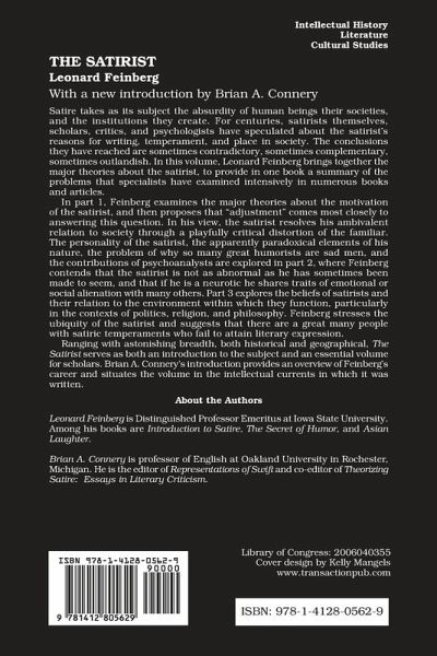 Satire takes as its subject the absurdity of human beings, their societies, and the institutions they create. For centuries, satirists themselves, scholars, critics, and psychologists have speculated about the satirist's reasons for writing, temperament, and place in society. The conclusions they have reached are sometimes contradictory, sometimes complementary, sometimes outlandish. In this volume, Leonard Feinberg brings together the major theories about the satirist, to provide in one book a summary of the problems that specialists have examined intensively in numerous books and articles. In part 1, Feinberg examines the major theories about the motivation of the satirist, and then proposes that "adjustment" comes most closely to answering this question. In his view, the satirist resolves his ambivalent relation to society through a playfully critical distortion of the familiar. The personality of the satirist, the apparently paradoxical elements of his nature, the problem of why so many great humorists are sad men, and the contributions of psychoanalysts are explored in part 2, where Feinberg contends that the satirist is not as abnormal as he has sometimes been made to seem, and that if he is a neurotic he shares traits of emotional or social alienation with many others. Part 3 explores the beliefs of satirists and their relation to the environment within which they function, particularly in the contexts of politics, religion, and philosophy. Feinberg stresses the ubiquity of the satirist and suggests that there are a great many people with satiric temperaments who fail to attain literary expression. Ranging with astonishing breadth, both historical and geographical, The Satirist serves as both an introduction to the subject and an essential volume for scholars. Brian A. Connery's introduction provides an overview of Feinberg's career and situates the volume in the intellectual currents in which it was written.