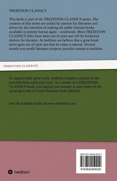 This book is part of the TREDITION CLASSICS series. The creators of this series are united by passion for literature and driven by the intention of making all public domain books available in printed format again - worldwide. At tredition we believe that a great book never goes out of style. Several mostly non-profit literature projects provide content to tredition. To support their good work, tredition donates a portion of the proceeds from each sold copy. As a reader of a TREDITION CLASSICS book, you support our mission to save many of the amazing works of world literature from oblivion.