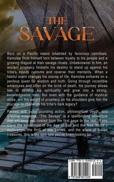 Born on a Pacific island inhabited by ferocious cannibals, Kamolea finds himself torn between loyalty to his people and a growing disgust at their savage rituals. Unbeknownst to him, an ancient prophecy foretells his destiny to stand up against his tribe's bloody customs and reverse their mentality. When a fateful event changes his course of life, Kamolea embarks on a perilous quest for wisdom and truth. Going through incredible adventures and often on the brink of death, his journey allows him to develop his spirituality and grow into a strong, knowledgeable man. But even with the guidance of mystical allies, will the weight of prophecy on his shoulders give him the courage to challenge his tribe's dark legacy? Packed with pulse-pounding action, philosophical depth, and gripping suspense, The Savage is a spellbinding adventure that will keep you riveted from the first page to the last. If you crave the excitement of the Age of Sail and the New World's exploration, the thrill of sea battles, and the allure of buried treasures, this is the epic tale you've been looking for.