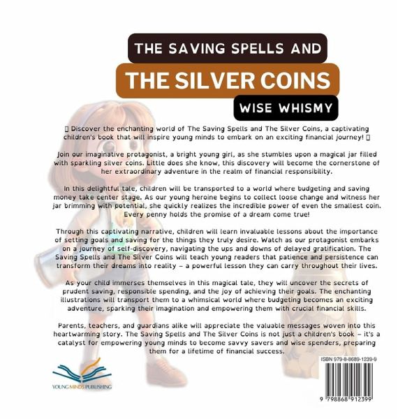 ¿¿¿¿ Discover the enchanting world of The Saving Spells and The Silver Coins, a captivating children's book that will inspire young minds to embark on an exciting financial journey! ¿¿¿¿ Join our imaginative protagonist, a bright young girl, as she stumbles upon a magical jar filled with sparkling silver coins. Little does she know, this discovery will become the cornerstone of her extraordinary adventure in the realm of financial responsibility. In this delightful tale, children will be transported to a world where budgeting and saving money take center stage. As our young heroine begins to collect loose change and witness her jar brimming with potential, she quickly realizes the incredible power of even the smallest coin. Every penny holds the promise of a dream come true! Through this captivating narrative, children will learn invaluable lessons about the importance of setting goals and saving for the things they truly desire. Watch as our protagonist embarks on a journey of self-discovery, navigating the ups and downs of delayed gratification. The Saving Spells and The Silver Coins will teach young readers that patience and persistence can transform their dreams into reality - a powerful lesson they can carry throughout their lives. As your child immerses themselves in this magical tale, they will uncover the secrets of prudent saving, responsible spending, and the joy of achieving their goals. The enchanting illustrations will transport them to a whimsical world where budgeting becomes an exciting adventure, sparking their imagination and empowering them with crucial financial skills. Parents, teachers, and guardians alike will appreciate the valuable messages woven into this heartwarming story. The Saving Spells and The Silver Coins is not just a children's book - it's a catalyst for empowering young minds to become savvy savers and wise spenders, preparing them for a lifetime of financial success. Don't miss out on this extraordinary opportunity to ignite your child's financial imagination! Spark conversations about money, saving, and the importance of setting goals with The Saving Spells and The Silver Coins. Grab your copy today and watch as your child embarks on a magical journey toward a financially bright future!