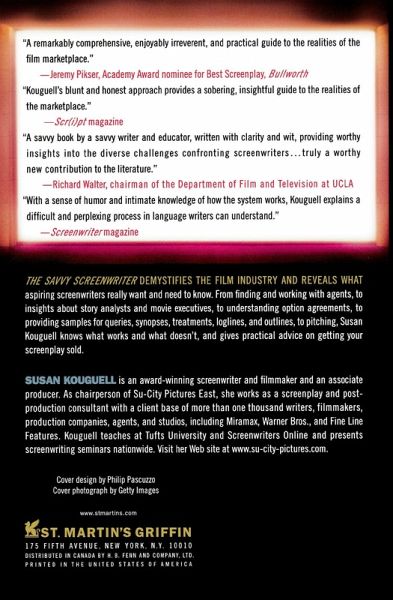 The Savvy Screenwriter demystifies the film industry and reveals what aspiring screenwriters really want and need to know. From finding and working with agents, to insights about story analysts and movie executives, to understanding option agreements, to providing samples for queries, synopses, treatments, loglines, and outlines, to pitching, Susan Kouguell knows what works and what doesn't, and gives practical advice on getting your screenplay sold.