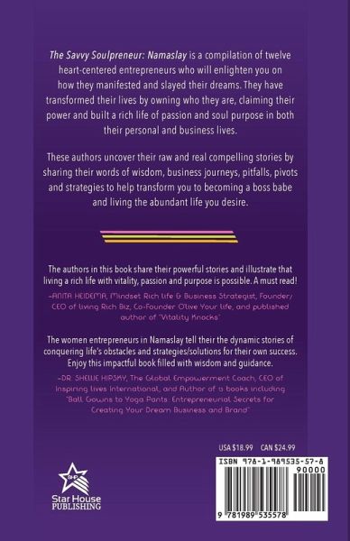 The Savvy Soulpreneur: Namaslay is a compilation of twelve heart-centered entrepreneurs who will enlighten you on how they manifested and slayed their dreams. They have transformed their lives by owning who they are, claiming their power and built a rich life of passion and soul purpose in both their personal and business lives. These authors uncover their raw and real compelling stories by sharing their words of wisdom, business journeys, pitfalls, pivots and strategies to help transform you to becoming a boss babe and living the abundant life you desire. AUTHORS: Lisa Carter Julie Cryns Pati Diaz Dawn Espinoza Anna Gaspari Jamie Gates Christine Henderson Sandra Lisi Dr. Kim Redman Michele Maher Mali Phonpadith Anna Zeccolo Reeves
