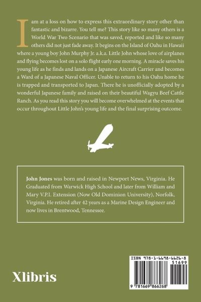 I am at a loss on how to express this extraordinary story other than fantastic and bizarre. You tell me? This story like so many others is a World War Two Scenario that was saved, reported and like so many others did not just fade away. It begins on the Island of Oahu in Hawaii where a young boy John Murphy Jr. a.k.a. Little John whose love of airplanes and flying becomes lost on a solo flight early one morning. A miracle saves his young life as he finds and lands on a Japanese Aircraft Carrier and becomes a Ward of a Japanese Naval Officer. Unable to return to his Oahu home he is trapped and transported to Japan. There he is unofficially adopted by a wonderful Japanese family and raised on their beautiful Wagyu Beef Cattle Ranch. As you read this story you will become overwhelmed at the events that occur throughout Little John's young life and the final surprising outcome.