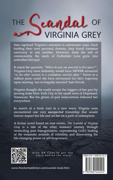 Sam captured Virginia's attention in unforeseen ways. Each battling their own personal demons, they found common sanctuary in one another. However, from the soil of commonality, the seeds of Forbidden Love grew into unbridled betrayal. If asked the question, "Where do you see yourself in five years?", Virginia Grey most definitely would have NEVER answered "as the other woman in a scandalous marital affair." Never in a million years could she have envisioned her life's trajectory upon meeting 'not-so-happily-married' Sam Novak. Virginia thought she could escape the triggers of her past by moving from New York City to the small town of Hopeland, Tennessee. But the ghosts of past indiscretions followed her everywhere. In search of a fresh start in a new town, Virginia soon encountered one very unexpected friendship that would forever impact her life and set her on a path of redemption. A fiction novel based on true events, The Scandal of Virginia Grey is a tale of the other woman's journey through reconciling past transgressions, experiencing God's healing of the traumatic wounds of infidelity, and discovering the life-changing power of self-forgiveness.