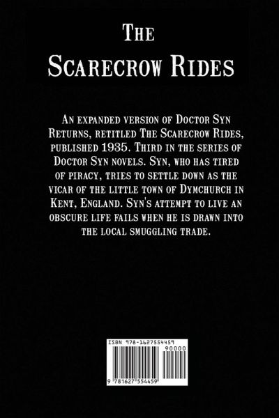 An expanded version of Doctor Syn Returns, retitled The Scarecrow Rides, published 1935. Third in the series of Doctor Syn novels. Syn, who has tired of piracy, tries to settle down as the vicar of the little town of Dymchurch in Kent, England. Syn's attempt to live an obscure life fails when he is drawn into the local smuggling trade.