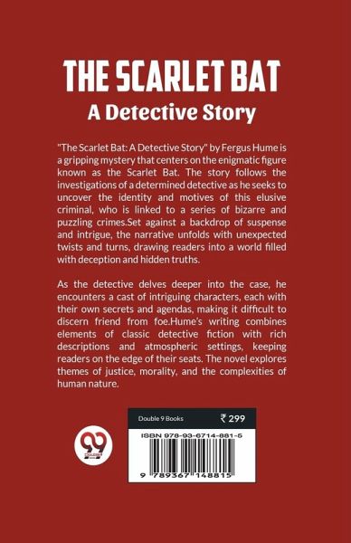 ""The Scarlet Bat: A Detective Story"" by Fergus Hume is a gripping mystery that centers on the enigmatic figure known as the Scarlet Bat. The story follows the investigations of a determined detective as he seeks to uncover the identity and motives of this elusive criminal, who is linked to a series of bizarre and puzzling crimes. Set against a backdrop of suspense and intrigue, the narrative unfolds with unexpected twists and turns, drawing readers into a world filled with deception and hidden truths. As the detective delves deeper into the case, he encounters a cast of intriguing characters, each with their own secrets and agendas, making it difficult to discern friend from foe. Hume's writing combines elements of classic detective fiction with rich descriptions and atmospheric settings, keeping readers on the edge of their seats. The novel explores themes of justice, morality, and the complexities of human nature.