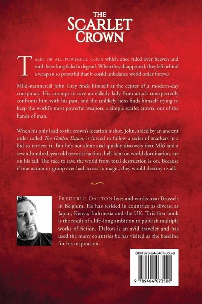 "A weapon of mass destruction that's thousands of years old, is no larger than a shoe-box and can be re-used... but it's not what you think it is..." .... Tales of all-powerful gods which once ruled over heaven and earth have long faded to legend. When they disappeared, they left behind a weapon so powerful that it could unbalance world order forever. Mild-mannered John Grey finds himself at the center of a modern-day conspiracy. His attempt to save an elderly lady from attack unexpectedly confronts him with his past, and the unlikely hero finds himself trying to keep the world's most powerful weapon, a simple scarlet crown, out of the hands of man. When his only lead to the crown's location is shot, John, aided by an ancient order called The Golden Dawn, is forced to follow a series of markers in a bid to retrieve it. But he's not alone and quickly discovers that MI6 and a seven-hundred-year old terrorist faction, hell-bent on world domination, are on his tail. The race to save the world from total destruction is on. Because if one nation or group ever had access to magic, they would destroy us all.