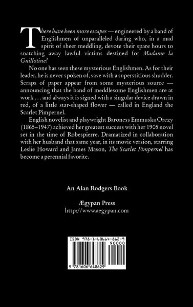 There have been more escapes -- engineered by a band of Englishmen of unparalleled daring who, in a mad spirit of sheer meddling, devote their spare hours to snatching away lawful victims destined for Madame la Guillotine! No one has seen these mysterious Englishmen. As for their leader, he is never spoken of, save with a superstitious shudder. Scraps of paper appear from some mysterious source -- announcing that the band of meddlesome Englishmen are at work . . . and always it is signed with a singular device drawn in red, of a little star-shaped flower -- called in England the Scarlet Pimpernel.