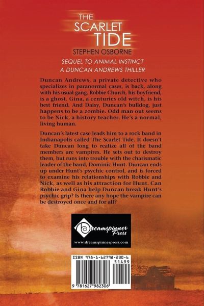 Sequel to Animal InstinctA Duncan Andrews Thriller Duncan Andrews, a private detective who specializes in paranormal cases, is back, along with his usual gang. Robbie Church, his boyfriend, is a ghost. Gina, a centuries old witch, is his best friend. And Daisy, Duncan's bulldog, just happens to be a zombie. Odd man out seems to be Nick, a history teacher. He's a normal, living human. Duncan's latest case leads him to a rock band in Indianapolis called The Scarlet Tide. It doesn't take Duncan long to realize all of the band members are vampires. He sets out to destroy them, but runs into trouble with the charismatic leader of the band, Dominic Hunt. Duncan ends up under Hunt's psychic control, and is forced to examine his relationships with Robbie and Nick, as well as his attraction for Hunt. Can Robbie and Gina help Duncan break Hunt's psychic grip? Is there any hope the vampire can be destroyed once and for all?