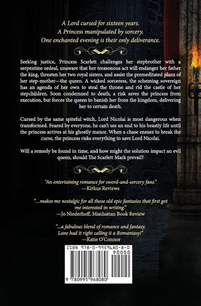 A Lord cursed for sixteen years.A Princess manipulated by sorcery.One enchanted evening is their only deliverance. Seeking justice, Princess Scarlett challenges her stepbrother with a serpentine ordeal, unaware that her treasonous act will endanger her father the king, threaten her two royal sisters, and assist the premeditated plans of her step-mother-the queen. A wicked sorceress, the scheming sovereign has an agenda of her own to steal the throne and rid the castle of her stepchildren. Soon condemned to death, a risk saves the princess from execution, but forces the queen to banish her from the kingdom, delivering her to certain death. Cursed by the same spiteful witch, Lord Nicolai is most dangerous when transformed. Feared by everyone, he can't see an end to his beastly life until the princess arrives at his ghostly manor. When a chase ensues to break the curse, the princess risks everything to save Lord Nicolai. Will a remedy be found in time, and how might the solution impact an evil queen, should The Scarlett Mark prevail?