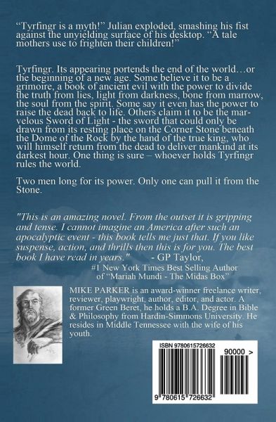 Tyrfingr. Its appearing portends the end of the world...or the beginning of a new age. Some believe it to be a grimoire, a book of ancient evil with the power to divide the truth from lies, light from darkness, bone from marrow, the soul from the spirit. Some say it even has the power to raise the dead back to life. Others claim it to be the marvelous Sword of Light - the sword that could only be drawn from its resting place on the Corner Stone beneath the Dome of the Rock by the hand of the true king, who will himself return from the dead to deliver mankind at its darkest hour. One thing is sure - whoever holds Tyrfingr rules the world. Two men long for its power. Only one can pull it from the Stone.