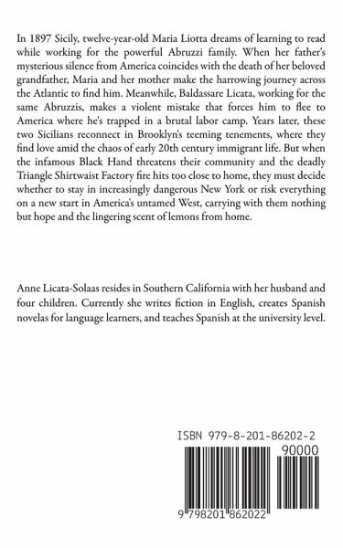 Sicily, 1897. Amidst hunger, Mafia control, and widespread unemployment, twelve-year-old Maria Liotta and nineteen-year-old Baldassare Licata set sail for America. In New York, they face ruthless padroni, an unfamiliar education system, betrayal, and the menacing Mano Nera, the Black Hand. This true story follows Maria, Baldassare, and siblings Gaetana and Domenico as they fight exploitation and build new lives in turn-of-the-century New York. The Scent of Lemons, Part 1: A Sicilian Journey begins the sweeping saga of the Licata family.