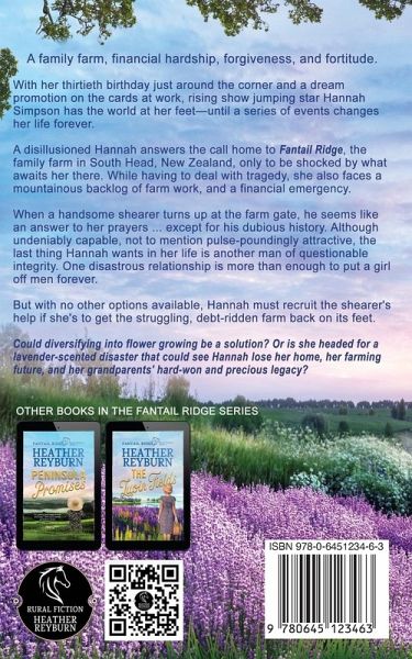 A family farm, financial hardship, forgiveness, and fortitude. With her thirtieth birthday just around the corner and a dream promotion on the cards at work, rising show jumping star Hannah Simpson has the world at her feet-until a series of events changes her life forever. A disillusioned Hannah answers the call home to Fantail Ridge, the family farm in South Head, New Zealand, only to be shocked by what awaits her there. While having to deal with tragedy, she also faces a mountainous backlog of farm work and a financial emergency. When a handsome shearer turns up at the farm gate, he seems like an answer to her prayers ... except for his dubious history. Although undeniably capable, not to mention pulse-poundingly attractive, the last thing Hannah wants in her life is another man of questionable integrity. One disastrous relationship is more than enough to put a girl off men forever. But with no other options available, Hannah must recruit the shearer's help if she's to get the struggling, debt-ridden farm back on its feet. Could diversifying into flower growing be a solution? Or is she headed for a lavender-scented disaster that could see Hannah lose her home, her farming future, and her grandparents' hard-won and precious legacy?