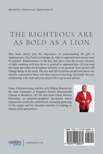 This book delves into the importance of understanding the gift of righteousness. Our God is sovereign, In order to approach him access must be granted. Righteousness is the key that gives you the access, because of right standing with him favor is granted to approach him. As you read this book get ready for Kingdom authority to be granted. Your access will change things in the earth. The rise and fall of nations people and places are directly connected to those who have access to the king. Get ready for your relationship with God and your prayer life to go to new places.