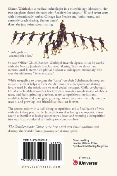 "Little girls can accomplish a lot." So says Officer Chuck Zander, Worldpol Juvenile Specialist, as he works with the Novice Jazzicals Synchronized Skating Team to thwart an international bioterrorism plot and rescue a kidnapped missionary who uses the nickname "Scheherazade." While struggling to overcome the "curse" on their Scheherazade program music, the team helps Officer Zander monitor a computer ice skating forum used by the missionary to send coded messages. Child psychologist Dr. Michaela Milani coaches her Novices through a tough season of cheers, tears, and fears, grinding practices, tense competitions, medals and muddles, fights and apologies, growing out of costumes that only last one season, and growing into friendships that last forever. The season ends with a nail-biting competition and a final battle of wits with the kidnappers, as the Jazzicals learn that losing a competition isn't nearly as horrible as losing someone you love, and winning a competition isn't nearly as wonderful as finding someone you love. The Scheherazade Curse is the first novel ever about synchronized skating, the world's fastest-growing ice skating sport.