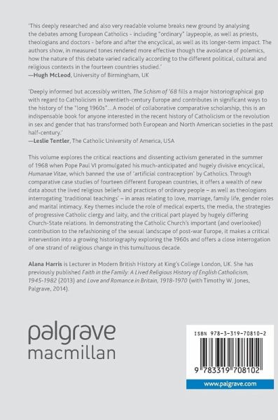 "A genuinely groundbreaking collection, where international and interdisciplinary new scholarship explores the relationship between Roman Catholicism and global developments in sexuality and women's reproductive rights in the `radical 1960s'. ... The Schism of'68: Catholics, Contraception and `Humanae Vitae' in Europe, 1945-1975 presents a multifaceted and meticulously researched scholarly collection, and isa sophisticated contribution to our understanding of the past." (Scriptable, rtreview.org, Issue 21, June, 2018)