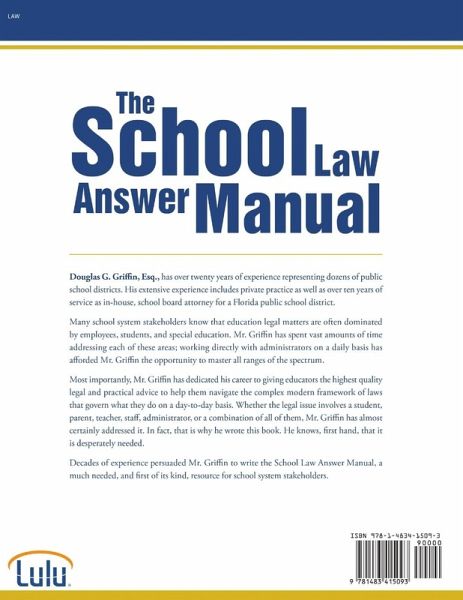 Many school system stakeholders know that education legal matters are often dominated by employees, students, and special education. Mr. Griffin has spent vast amounts of time addressing each of these areas; working directly with administrators on a daily basis has afforded Mr. Griffin the opportunity to master all ranges of the spectrum. Most importantly, Mr. Griffin has dedicated his career to giving educators the highest quality legal and practical advice to help them navigate the complex modern framework of laws that govern what they do on a day-to-day basis. Whether the legal issue involves a student, parent, teacher, staff, administrator, or a combination of all of them, Mr. Griffin has almost certainly addressed it. In fact, that is why he wrote this book. He knows, first hand, that it is desperately needed.