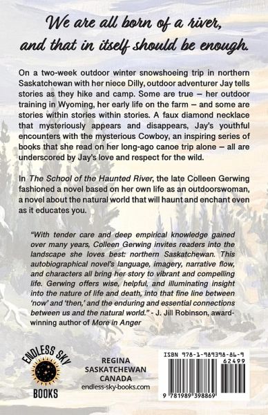 On a two-week outdoor winter snowshoeing trip in northern Saskatchewan with her niece Dilly, outdoor adventurer Jay tells stories as they hike and camp. Some are true - her outdoor training in Wyoming, her early life on the farm - and some are stories within stories within stories. A faux diamond necklace that mysteriously appears and disappears, Jay's youthful encounters with the mysterious Cowboy, an inspiring series of books that she read on her long-ago canoe trip alone - all are underscored by Jay's love and respect for the wild. In The School of the Haunted River, the late Colleen Gerwing fashioned a novel based on her own life as an outdoorswoman, a novel about the natural world that will haunt and enchant even as it educates you.