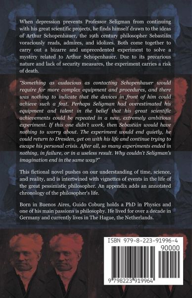 When depression prevents Professor Seligman from continuing with his great scientific projects, he finds himself drawn to the ideas of Arthur Schopenhauer, the 19th century philosopher Sebastián voraciously reads, admires, and idolizes. Both come together to carry out a bizarre and unprecedented experiment to solve a mystery related to Arthur Schopenhauer. Due to its precarious nature and lack of security measures, the experiment carries a risk of death. "Something as audacious as contacting Schopenhauer would require far more complex equipment and procedures, and there was nothing to indicate that the devices in front of him could achieve such a feat. Perhaps Seligman had overestimated his equipment and talent in the belief that his great scientific achievements could be repeated in a new, extremely ambitious experiment. If this one didn't work, then Sebastián would have nothing to worry about. The experiment would end quietly, he could return to Dresden, get on with his life and continue trying to escape his personal crisis. After all, so many experiments ended in nothing, in failure, or in a useless result. Why couldn't Seligman's imagination end in the same way?" This fictional novel pushes on our understanding of time, science, and reality, and is intertwined with vignettes of events in the life of the great pessimistic philosopher. An appendix adds an annotated chronology of the philosopher's life. Born in Buenos Aires, Guido Coburg holds a PhD in Physics and one of his main passions is philosophy. He lived for over a decade in Germany and currently lives in The Hague, the Netherlands.