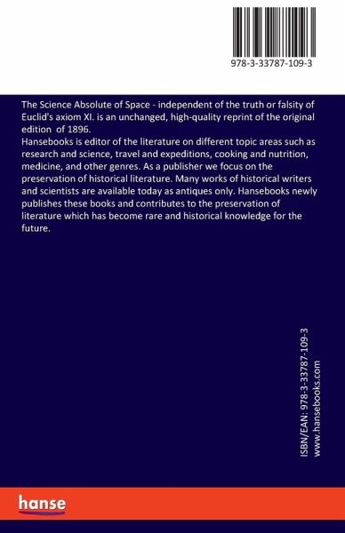The Science Absolute of Space - independent of the truth or falsity of Euclid's axiom XI. is an unchanged, high-quality reprint of the original edition of 1896.