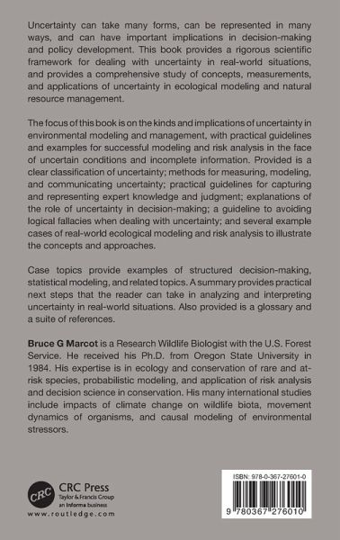 Uncertainty can take many forms, can be represented in many ways, and can have important implications in decision-making and policy development. This book provides a rigorous scientific framework for dealing with uncertainty in real-world situations, and provides a comprehensive study of concepts, measurements, and applications of uncertainty in ecological modeling and natural resource management. The focus of this book is on the kinds and implications of uncertainty in environmental modeling and management, with practical guidelines and examples for successful modeling and risk analysis in the face of uncertain conditions and incomplete information. Provided is a clear classification of uncertainty; methods for measuring, modeling, and communicating uncertainty; practical guidelines for capturing and representing expert knowledge and judgment; explanations of the role of uncertainty in decision-making; a guideline to avoiding logical fallacies when dealing with uncertainty; and several example cases of real-world ecological modeling and risk analysis to illustrate the concepts and approaches. Case topics provide examples of structured decision-making, statistical modeling, and related topics. A summary provides practical next steps that the reader can take in analyzing and interpreting uncertainty in real-world situations. Also provided is a glossary and a suite of references.