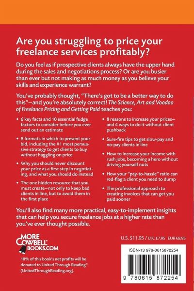 Are you struggling to price your freelance services profitably? Do you feel as if prospective clients always have the upper hand during the sales and negotiations process? Or are you busier than ever but not making as much money as you believe your skills and experience warrant? You’ve probably thought, "There’s got to be a better way to do this"—and you’re absolutely correct! The Science, Art and Voodoo of Freelance Pricing and Getting Paid teaches you: 6 key facts and 10 essential fudge factors to consider before you ever send out an estimate 8 formats in which to present your bid, including the #1 most persuasive strategy to get clients to buy without haggling on price Why you should never discount your price as a first step in negotiating, and what you should do instead The one hidden resource that you must create—not only to keep bad clients in line, but to avoid them in the first place 8 reasons to increase your prices—and 4 ways to do it without client pushback Sure-fire tips to get slow-pay and no-pay clients in line How to increase your income with rush jobs, becoming a hero without driving yourself nuts • How your "pay-to-hassle" ratio can red-flag a client you need to dump The professional approach to creating invoices that can get you paid sooner You’ll also find many more practical, easy-to-implement insights that can help you secure freelance jobs at a higher rate than you’ve ever thought possible.
