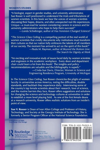 In The Science Glass Ceiling, Sue Rosser chronicles the plight of women faculty across the country. Noting difficulties, double standards, and backlash that they routinely face. Rosser interviewed some of the country's best female scientists about their research, love of science, and routing barriers faced. She offers suggestions and solutions for changing the science and technology culture at universities in order to establish a more level playing field. As the first woman Dean at a science/technical school, Rosser offers realistic solutions from an insider's perspective.