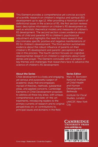 This Element provides a comprehensive yet concise account of scientific research on children's religious and spiritual (RS) development. It examines the key themes and challenges that researchers face to advance the science of children's RS development.