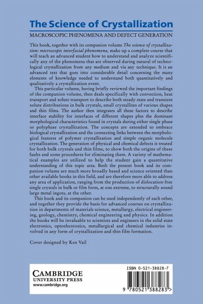 This book, together with its companion volume The Science of Crystallization: Microscopic Interfacial Phenomena, make up a complete course that will teach an advanced student how to understand and analyse scientifically any of the phenomena that are observed during natural or technological crystallization.
