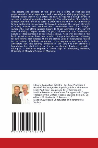 The editors and authors of this book are a cadre of scientists and physicians with broad experience and knowledge of diving physiology and decompression theory. As is often the case, it requires a group effort to succeed in advancing practical knowledge. The colloquialism "the whole is greater than the sum of its parts" is often true and the PHYPODE Research Group epitomizes this concept. By logically grouping the various elements of diving science and medicine with provocative "food for thought" sections the text offers valuable lessons to those interested in the current state of diving. Despite nearly 170 years of research, the fundamental nature of decompression stress remains elusive. As is well outlined in this book, great advances have been made to the practical elements allowing for safe diving. Nonetheless, there are glaring voids of knowledge related to the nature of bubble nucleation, its consequences and methods to ameliorate risk. The synergy exhibited in this text not only provides a foundation for what is known, it offers a glimpse of where research is taking us. --- Professor Stephen R. Thom, Dept. of Emergency Medicine, University of Maryland School of Medicine.