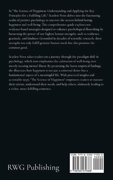 In "The Science of Happiness: Understanding and Applying the Key Principles for a Fulfilling Life," Scarlett Nora delves into the fascinating realm of positive psychology to uncover the secrets behind lasting happiness and well-being. This comprehensive guide explores ten evidence-based strategies designed to enhance psychological flourishing by harnessing the power of our highest human strengths, such as resilience, gratitude, and kindness. Grounded in decades of scientific research, these strengths not only fulfill genuine human needs but also promote the common good. Scarlett Nora takes readers on a journey through the paradigm shift in psychology, which now emphasizes the cultivation of well-being over merely treating mental illness. By presenting the latest empirical findings, she illustrates how happiness is not just a universal desire but a fundamental aspect of a meaningful life. With practical insights and actionable steps, "The Science of Happiness" empowers readers to nurture their talents, understand their needs, and help others, ultimately leading to a richer, more fulfilling existence.