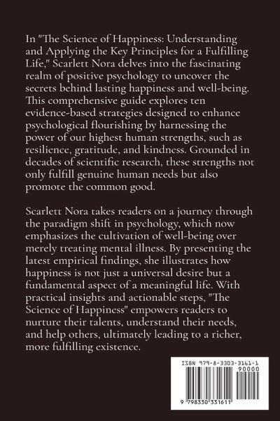 In "The Science of Happiness: Understanding and Applying the Key Principles for a Fulfilling Life," Scarlett Nora delves into the fascinating realm of positive psychology to uncover the secrets behind lasting happiness and well-being. This comprehensive guide explores ten evidence-based strategies designed to enhance psychological flourishing by harnessing the power of our highest human strengths, such as resilience, gratitude, and kindness. Grounded in decades of scientific research, these strengths not only fulfill genuine human needs but also promote the common good. Scarlett Nora takes readers on a journey through the paradigm shift in psychology, which now emphasizes the cultivation of well-being over merely treating mental illness. By presenting the latest empirical findings, she illustrates how happiness is not just a universal desire but a fundamental aspect of a meaningful life. With practical insights and actionable steps, "The Science of Happiness" empowers readers to nurture their talents, understand their needs, and help others, ultimately leading to a richer, more fulfilling existence.