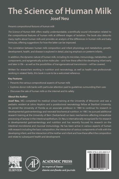 The Science of Human Milk offers readily understandable, scientifically sound information related to the compositional features of human milk at different stages of lactation. The book also debunks many myths about human milk and provides an analysis of the differences in human milk and baby formulas, offering suggestions for how the latter can be improved. The correlation between human milk composition and infant physiology and metabolism, growth, development, health and disease is explored in detail, placing emphasis on preterm infants. In addition, the dynamic nature of human milk, including its microbes, immunology, metabolites, cell components and epigenetically active molecules are covered. Written for researchers working in nutrition and neonatology, as well as health care professionals working in related fields, this book is sure to be a welcomed reference.