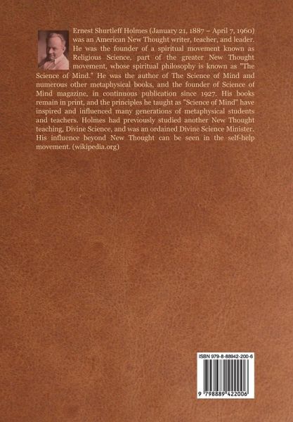 Ernest Shurtleff Holmes (January 21, 1887 - April 7, 1960) was an American New Thought writer, teacher, and leader. He was the founder of a spiritual movement known as Religious Science, part of the greater New Thought movement, whose spiritual philosophy is known as "The Science of Mind." He was the author of The Science of Mind and numerous other metaphysical books, and the founder of Science of Mind magazine, in continuous publication since 1927. His books remain in print, and the principles he taught as "Science of Mind" have inspired and influenced many generations of metaphysical students and teachers. Holmes had previously studied another New Thought teaching, Divine Science, and was an ordained Divine Science Minister. His influence beyond New Thought can be seen in the self-help movement. (wikipedia.org)