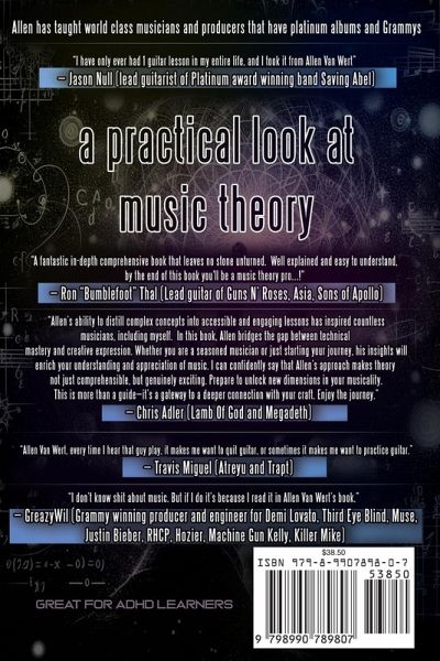 Music theory done as a science. No more gatekeeping. It is an upgrade and contains unique views and a more accurate representation of reality for music based on some interesting findings. This is a better system and more accurate to our reality. Centuries of books labeled as music theory have mostly taught music history, not theory. They teach the outcomes for classical and jazz composers and name them hundreds of things instead. This book teaches the cause instead of a bunch of effects. There is very little standard notation in this book because that has nothing to do with music theory itself. This is for actual music creating and understanding. It isn't music history about classical or jazz composers or outdated notation. It only contains useful information. Allen Van Wert, renowned musician and educator, challenges traditional music theory and offers a fresh perspective that will transform your understanding of music. Here's some of why this book is unique:It explains why there should have never been a minor scale in music - a groundbreaking revelation! Contains every possible sound combination and chord option for unlimited creativity as a quick and efficient reference section. Simplifies complex concepts into easy-to-understand steps, perfect for beginners and experienced musicians alike. Includes a revolutionary explanation of modes, fully understand them for the first time. There are worksheet assignments and a discord server link in case you have questions. Great for ADHD learners. Short chapters and each starts off by telling you why you need to learn this and how it fits in. This is something that helps certain brains to focus and learn best. The reference section is something you will use every day as a musician. This is the NEW Music Theory!