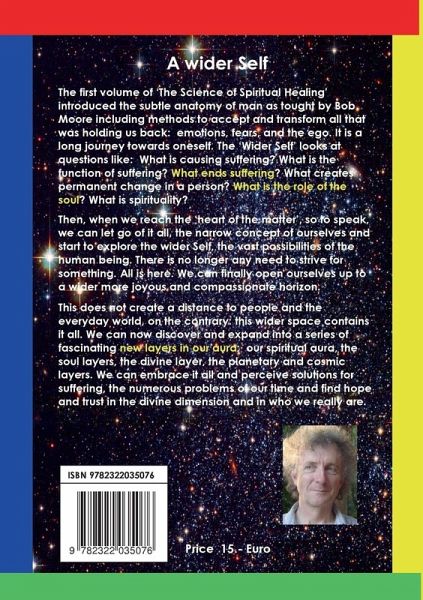 The first volume of 'The Science of Spiritual Healing' introduced the subtle anatomy of man as tought by Bob Moore including methods to accept and transform all that was holding us back: emotions, fears, and the ego. It is a long journey towards oneself. The 'Wider Self' looks at questions like: What is causing suffering? What is the function of suffering? What ends suffering? What creates permanent change in a person? What is the role of the soul? What is spirituality? In this second volume we can discover and expand into a series of fascinating new layers in our aura: our spiritual aura, the soul layers, the divine layer, the planetary and cosmic layers. We can embrace it all and perceive solutions for suffering, the numerous problems of our time and find hope and trust in the divine dimension and in who we really are. This book is meant for people who have been working with inner transformation for a number of years.