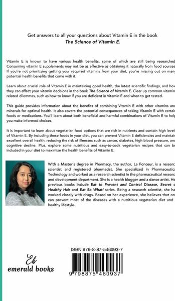 Get answers to all your questions about Vitamin E in the book The Science of Vitamin E. Vitamin E is known to have various health benefits, some of which are still being researched. Consuming vitamin E supplements may not be as effective as obtaining it naturally from food sources. If you're not prioritizing getting your required vitamins from your diet, you're missing out on many potential health benefits that come with it. Learn about the crucial role of Vitamin E in maintaining good health, the latest scientific findings, and how they can affect your vitamin decisions in the book The Science of Vitamin E. Clear up common vitamin-related dilemmas, such as how to know if you are deficient in Vitamin E and when to get tested. This guide provides information about the benefits of combining Vitamin E with other vitamins and minerals for optimal health. It also covers the potential consequences of taking Vitamin E with certain foods or medications. You'll learn about both beneficial and harmful combinations of Vitamin E to help you make informed choices. It is important to learn about vegetarian food options that are rich in nutrients and contain high levels of Vitamin E. By including these foods in your diet, you can prevent Vitamin E deficiencies and maintain excellent overall health, reducing the risk of illnesses such as cancer, diabetes, high blood pressure, and cognitive decline. Plus, explore some nutritious and easy-to-cook vegetarian recipes that can be included in your diet to maximize the health benefits of Vitamin E. Black and White Print Hardcover, ImageWrap