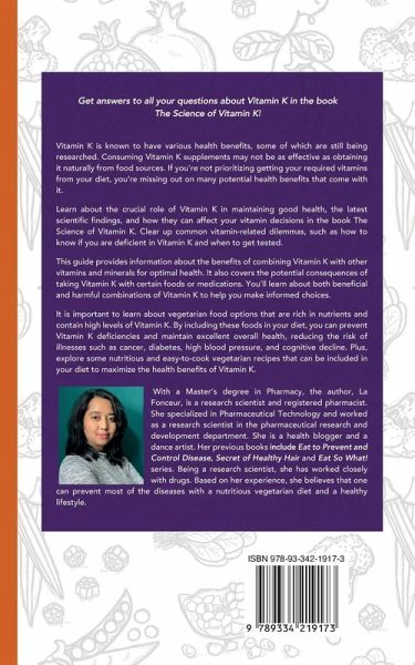 Get answers to all your questions about Vitamin K in the book The Science of Vitamin K! Vitamin K is known to have various health benefits, some of which are still being researched. Consuming Vitamin K supplements may not be as effective as obtaining it naturally from food sources. If you're not prioritizing getting your required vitamins from your diet, you're missing out on many potential health benefits that come with it. Learn about the crucial role of Vitamin K in maintaining good health, the latest scientific findings, and how they can affect your vitamin decisions in the book The Science of Vitamin K. Clear up common vitamin-related dilemmas, such as how to know if you are deficient in Vitamin K and when to get tested. This guide provides information about the benefits of combining Vitamin K with other vitamins and minerals for optimal health. It also covers the potential consequences of taking Vitamin K with certain foods or medications. You'll learn about both beneficial and harmful combinations of Vitamin K to help you make informed choices. It is important to learn about vegetarian food options that are rich in nutrients and contain high levels of Vitamin K. By including these foods in your diet, you can prevent Vitamin K deficiencies and maintain excellent overall health, reducing the risk of illnesses such as cancer, diabetes, high blood pressure, and cognitive decline. Plus, explore some nutritious and easy-to-cook vegetarian recipes that can be included in your diet to maximize the health benefits of Vitamin K.