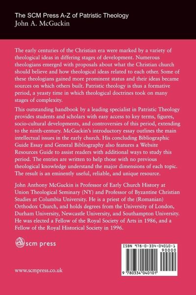 "The SCM Press A-Z of Patristic Theology" offers a valuable resource to students of Church history and historical theology. Combining accessibility with erudition, the expansive essays neither assure prior knowledge of the field nor fall prey to the dangers of oversimplification. A coherence of voice and vision is sustained, largely due to the fact that this volume is the work of one author, John Anthony McGuckin, whose deep learnedness and passion for ancient Christianity is evidenced on every page. Covering topics from East and West, the range of reference is from architecture and its liturgical implications, through to succinct explorations of persons, councils and controversies, definitions of faith, doctrine and the Christian life.