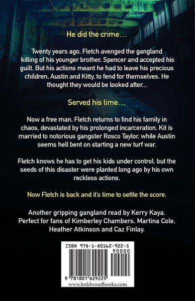 He did the crime... Twenty years ago, Fletch avenged the gangland killing of his younger brother, Spencer and accepted his guilt. But his actions meant he had to leave his precious children, Austin and Kitty to fend for themselves. He thought they would be looked after... Served his time... Now a free man, Fletch returns to find his family in chaos, devastated by his prolonged incarceration. Kit is married to notorious gangster Rosco Taylor, while Austin seems hell bent on doing everything he can to create a turf war. Fletch knows he has to do something to get his kids under control, but he also knows that the seeds of this disaster were planted long ago by his own reckless actions. Now Fletch is back and it's time to settle the score. Another gripping gangland read by Kerry Kaya. Perfect for fans of Kimberley Chambers, Martina Cole, Heather Atkinson and Caz Finlay.