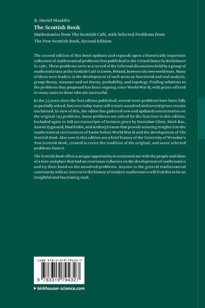 In the 35 years since the first edition published, several more problems have been fully or partially solved, but even today many still remain unsolved and several prizes remain unclaimed. In view of this, the editor has gathered new and updated commentaries on the original 193 problems. Some problems are solved for the first time in this edition. Included again in full are transcripts of lectures given by Stanislaw Ulam, Mark Kac, Antoni Zygmund, Paul Erdös, and Andrzej Granas that provide amazing insights into the mathematical environment of Lwów before World War II and the development of The Scottish Book. Also new in this edition are a brief history of the University of Wroclaw's New Scottish Book, created to revive the tradition of the original, and some selected problems from it.