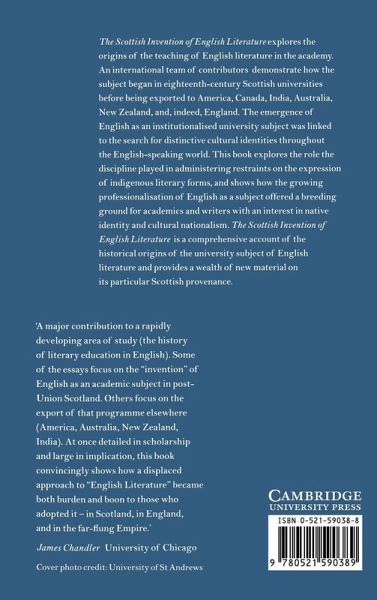 The Scottish Invention of English Literature explores the origins of the teaching of English literature in the academy. It demonstrates how the subject began in eighteenth-century Scottish universities before being exported to America and other countries. The emergence of English as an institutionalised university subject was linked to the search for distinctive cultural identities throughout the English-speaking world. This book explores the role the discipline played in administering restraints on the expression of indigenous literary forms, and shows how the growing professionalisation of English as a subject offered a breeding ground for academics and writers with an interest in native identity and cultural nationalism. This book is a comprehensive account of the historical origins of the university subject of English literature and provides a wealth of new material on its particular Scottish provenance.