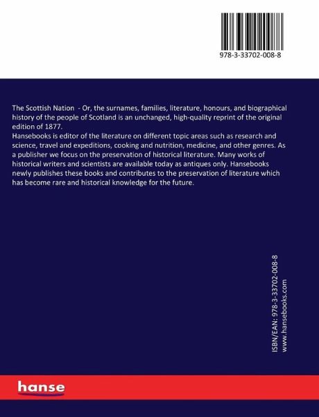 The Scottish Nation - Or, the surnames, families, literature, honours, and biographical history of the people of Scotland is an unchanged, high-quality reprint of the original edition of 1877.