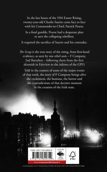 In the last hours of the 1916 Easter Rising 20-year old Charlie Saurin came face to face with his Commander-in-Chief Patrick Pearse. In a final gamble Pearse had a desperate plan to save the collapsing rebellion. It required the sacrifice of Saurin and his comrades. The Scrap is the true story of the rising from first-hand evidence as seen by one rebel unit - F Company 2nd Battalion - following them from the first skirmish in Fairview to the inferno of the GPO. Told in the context of some of the major events of that week the story of F Company brings alive the excitement the humour the horror and the contradictions of that decisive moment in the creation of the Irish state.
