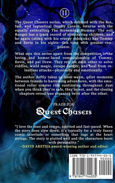 Chasing answers to a dangerous mystery, in a magical new world, can Eevie and Tommy solve the deadly puzzles and make it out alive? The Quest Chasers series, which debuted with the fun, fast, and fantastical Deadly Cavern, returns with the equally enthralling The Screaming Mummy. The evil Ranger has a track record of eliminating children, and he again (along with his creepy sidekicks) has Tommy and Eevie in his sights—this time with greater vengeance. What sets this series apart from the competition is the loving and humor-laced companionship of Tommy, Eevie, and pal Drew. They rely on each other to solve riddles, wield magic, escape danger, and heal from relentless attacks—physically and emotionally. The author deftly takes us from warm, quiet moments between friends to harrowing adventures, with the emotional roller coaster ride continuing throughout. Just when you think they’re safe, they’re not, and the closing chapters reveal one stunning twist after the other. Buy The Screaming Mummy and begin an exciting adventure with your child today!