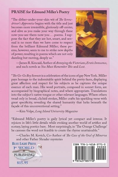 Edmund Miller, Senior Professor of English at LIU–Post and former long-term Department Chair, is most renowned for The Go Go Boy Sonnets but has published a dozen other poetry books and chapbooks. In addition, three of his plays are in verse: The Greeks Have a Word (a reconstructed satyr play), Loving Cuckold (in heroic couplets), and Royal Favorite; or, Regime Change (in blank verse). His short fiction is collected as Night Times. Miller also writes extensively about British literature and is the acknowledged authority on Lewis Carroll’s Sylvie and Bruno books while his Drudgerie Divine: The Rhetoric of God and Man in George Herbert is the most comprehensive study of that author. Major Works of Poetry and Fiction: Nature’s Nest of Boxes: A Book of Haiku. With Collage Illustrations by John Digby. Oyster Bay NY: Feral Press, 2014. A Rider of Currents. With Collage Illustrations by John Digby. Oyster Bay NY: Feral, 2009. The Go-Go Boy Sonnets: Men of the New York Club Scene. Portland OR: Inkwater, 2005. Night Times. London: Zipper Imprint of Prowler, 2000. Leavings. Northport NY: Birnham Wood, 1995. The Happiness Cure; and, Other Poems. Northport NY: Birnham Wood, 1993. Fucking Animals: A Book of Poems. 1973; Sarasota: Florida Literary Foundation, 1994. Scholarly Books: Editor with Tammy Nuzzo-Morgan, Peter Thabit Jones, Lynn E Cohen, and J R Turek. Long Island Sounds IV. Southampton: Wild Island, 2009. Intro. and notes. Stories Toto Told Me by Baron Corvo. Chicago: Valancourt, 2008. George Herbert’s Kinships: An Ahnentafel with Annotations. Bowie MD: Heritage, 1993. Editor with Robert DiYanni. Like Season’d Timber: New Essays on George Herbert. New York: Peter Lang, 1987. Editor. Mount Orgueil; or, Divine and Profitable Meditations by William Prynne: A Facsimile Edition. Delmar: Scholars’ Facsimiles & Reprints, 1984. Drudgerie Divine: The Rhetoric of God and Man in George Herbert. Salzburg: Universität Salzburg, 1979. Full-Length Plays Staged: The Greeks Have a Word. Royal Favorite; or, Regime Change. The Colonel’s Lady. Loving Cuckold.