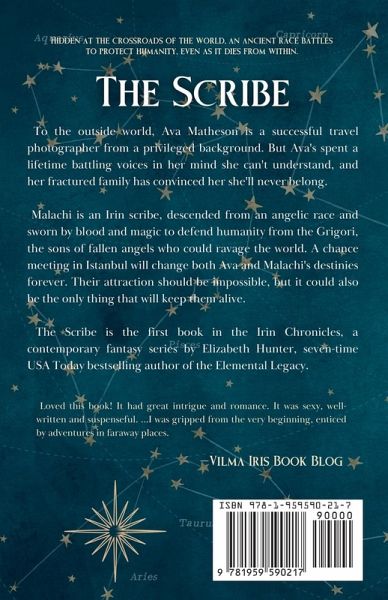 Special 10th Anniversary Edition Hidden at the crossroads of the world, an ancient race battles to protect humanity, even as it dies from within. To the outside world, Ava Matheson is a successful travel photographer from a privileged background. But Ava's spent a lifetime battling voices in her mind she can't understand, and her fractured family has convinced her she'll never belong. Malachi is an Irin scribe, descended from an angelic race and sworn by blood and magic to defend humanity from the Grigori, the sons of fallen angels who could ravage the world. A chance meeting in Istanbul will change both Ava and Malachi's destinies forever. Their attraction should be impossible, but it could also be the only thing that will keep them alive. THE SCRIBE is the first book in the Irin Chronicles, a contemporary fantasy series by Elizabeth Hunter, seven-time USA Today bestselling author of the Elemental Legacy.